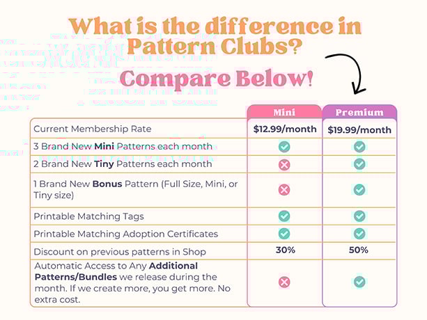 ✅ 3 Brand New Mini Kawaii Cuddler® Patterns – Be the First to Receive New Designs! (Designs release on the 10th of every month)